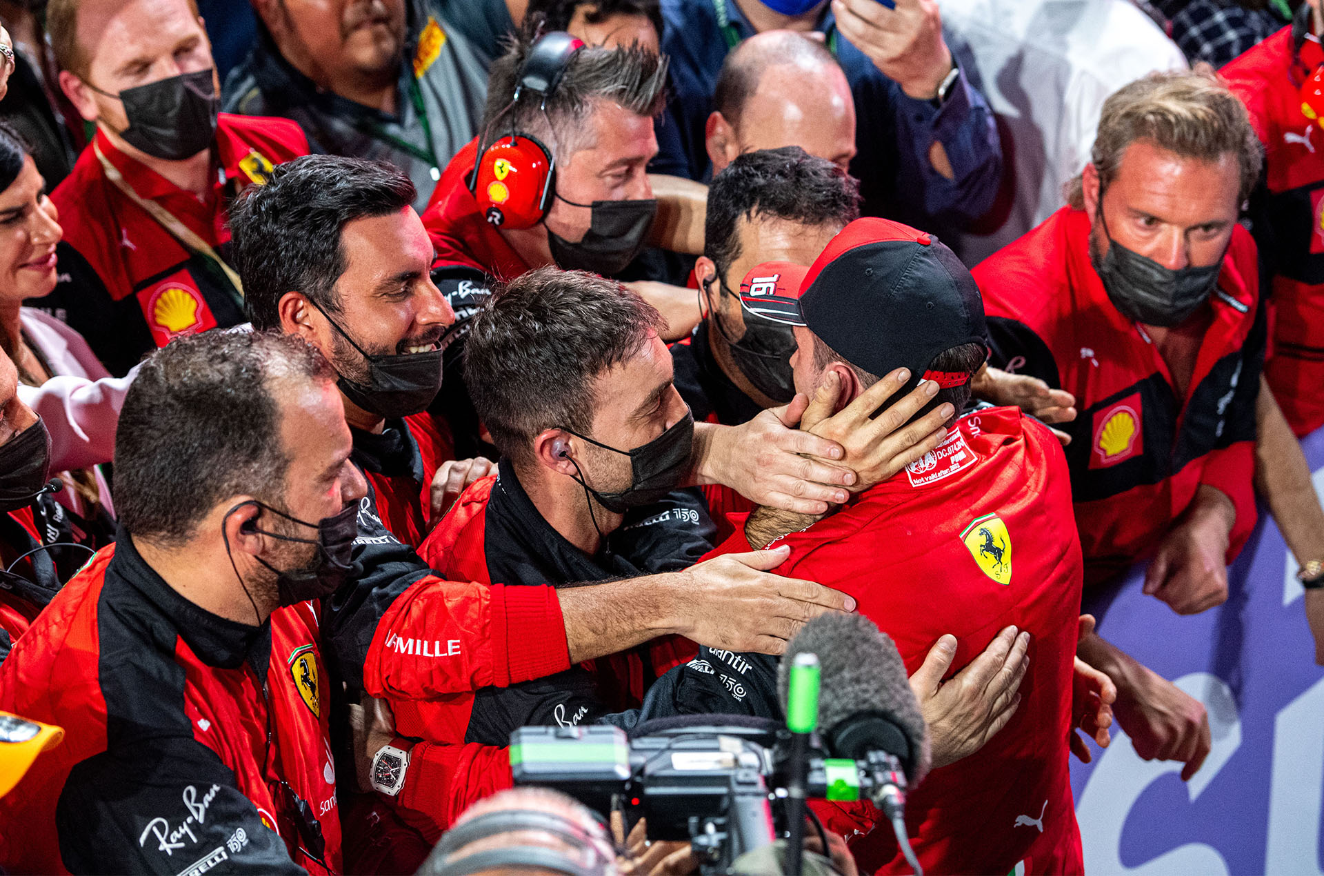 無獨有偶的是第16圈場上出現安全車狀況,等於是讓對手陣營提前進站的優勢化為烏有,而Scuderia Ferrari法拉利車隊也當機立斷,立刻讓兩輛車在同一圈進站,並且雙雙漂亮完成換胎作業,等到Charles Leclerc駛離維修區、安全車狀況解除後,這位摩納哥小將已經取得領先地位。
