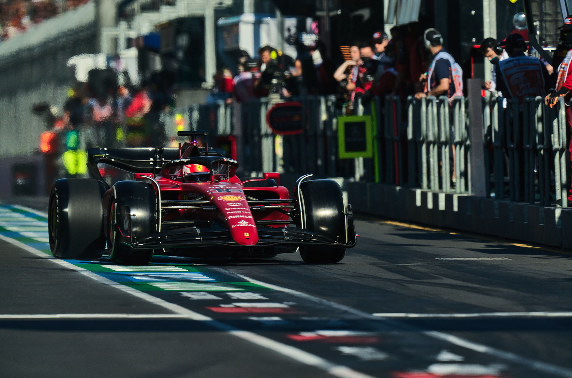 果不其然,F1-75在澳洲站練習賽中的各種指標均顯示出躍馬車隊在此擁有不差的適應性,而到了排位賽中兩位車手也輕鬆地進入第三階段排位賽,最終Charles Leclerc以1:17.868的成績奪下桿位,這次的桿位意義非凡,除了是躍馬車隊歷史上第232次桿位,Charles Leclerc也是場上唯一能將單圈時間推進到一分十八秒以內的車手,且與第二名車手的差距達到0.7秒之譜。至於Carlos Sainz Jr.原本也應能交出好成績,無奈的是第三階段排位賽出現紅旗狀況,讓他在最終衝刺圈之前,無法將輪胎溫度推升到理想工作溫度,因此排位賽只能佔據第9位。