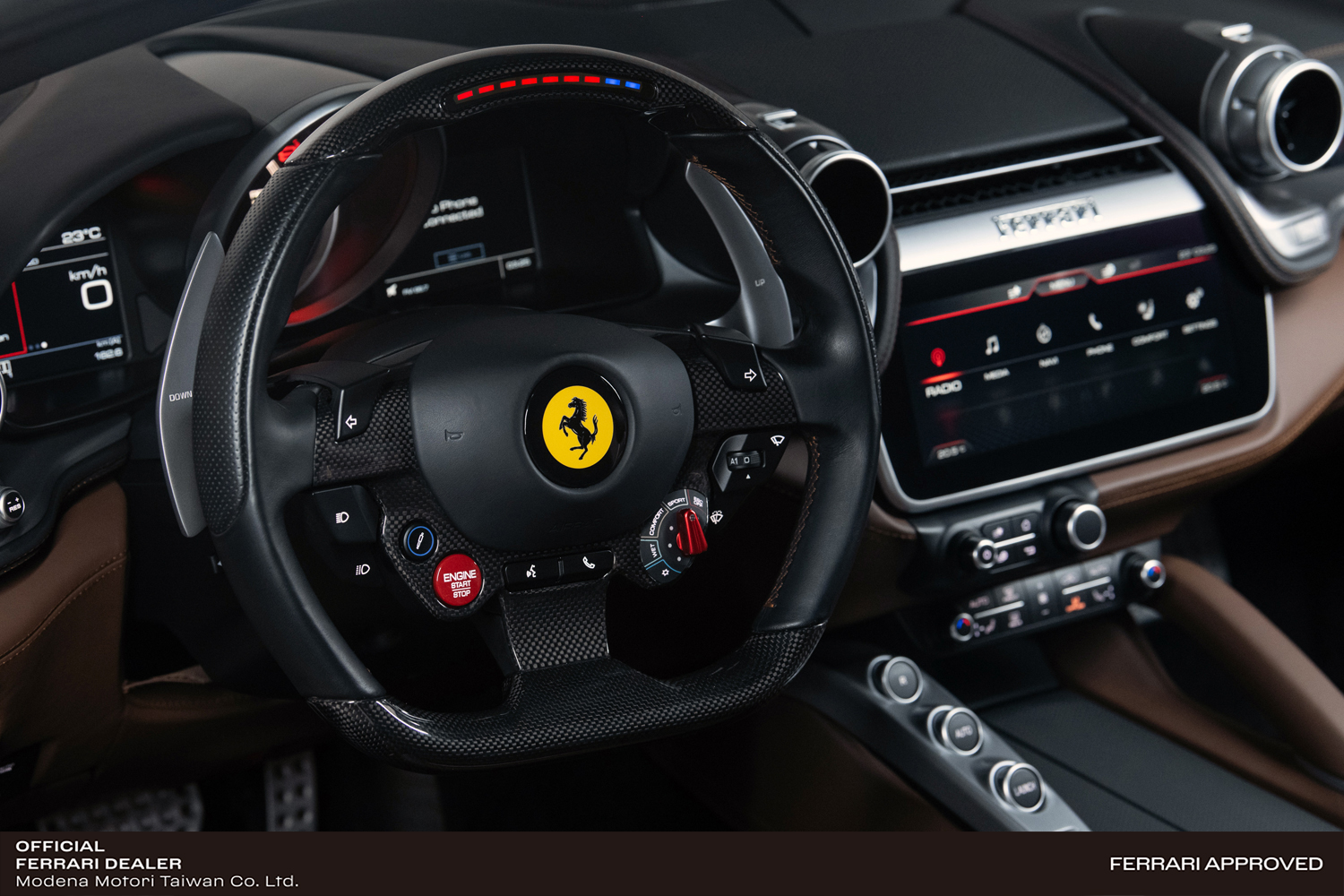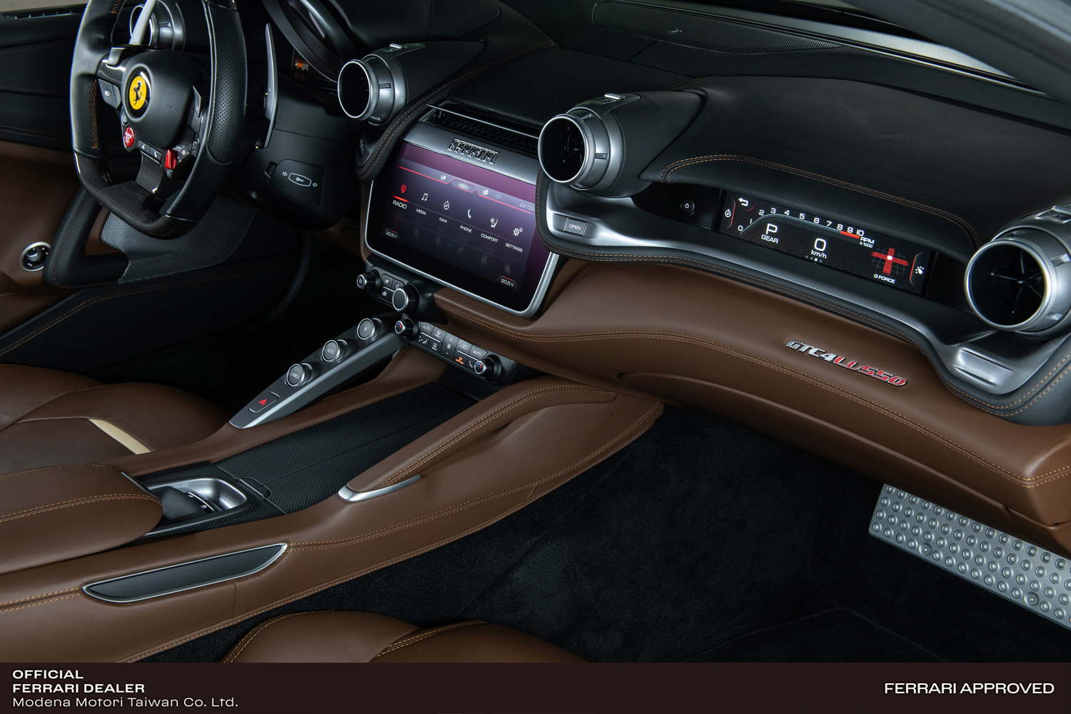 • 首次將獨有的4RM Evo四輪驅動專利技術與後輪轉向系統相結合,確保在任何路況下都能保證其出色的駕駛舒適性。全新的4RM-S(四輪驅動與轉向)系統是Ferrari法拉利的又一專利傑作,新系統在4.0版側滑控制系統的基礎上,加入了電子差速器(E-Diff)與SCM-E避震器。在Ferrari法拉利自主軟件協調下,這些看似複雜的動力控制部件好似如魚得水,即使在雪地、潮濕等低抓地力的路面上亦可確保出色的扭矩輸出。