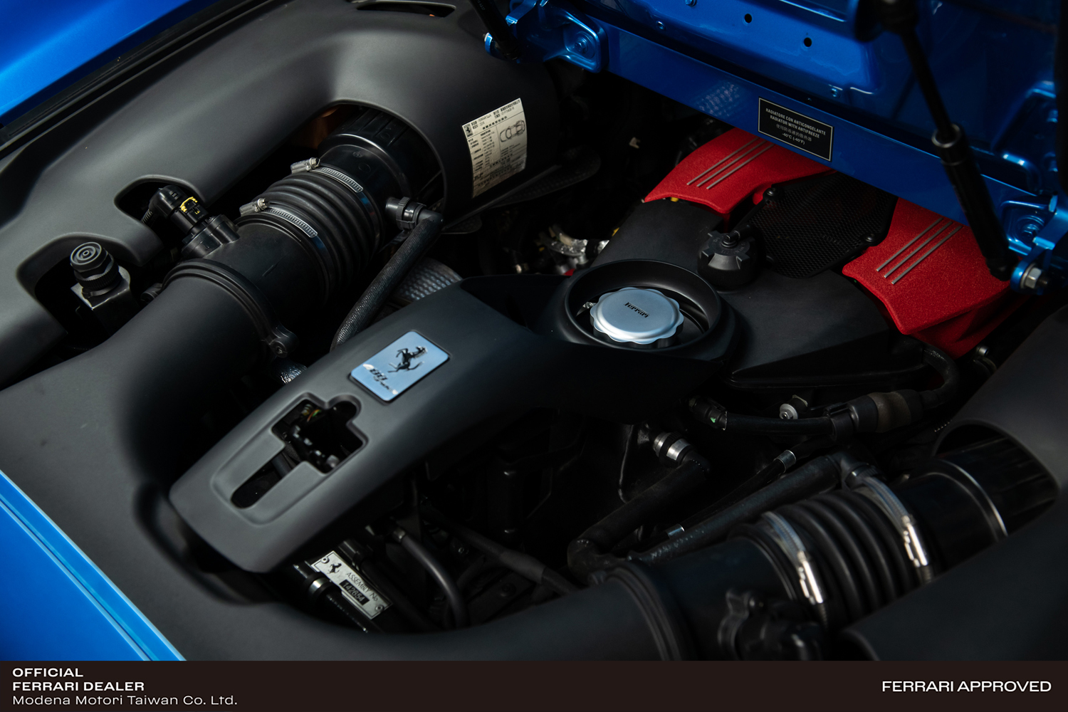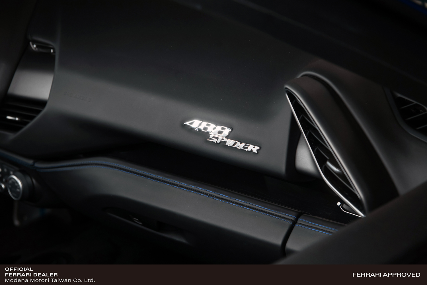 - 488 Spider搭載了一舉囊括2016, 2017 International Engine of the Year四項大獎的 3.9 升 V8 雙渦輪增壓的F154CB引擎 (排氣量 3,902c.c) 可於轉速 8,000 轉時、爆發670 匹最大馬力強勁輸出。