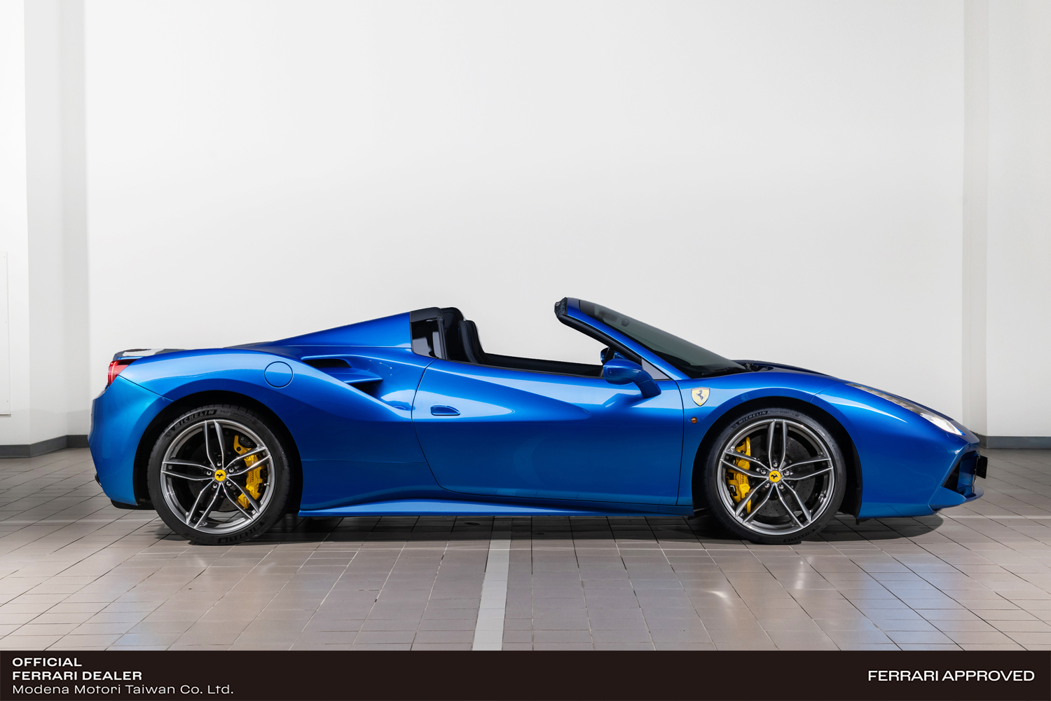 - 輕量化翻轉式硬頂設計源自於限量的458 Speciale Aperta,有效的將488 Spider與GTB之間的車重差異與剛性控制在50kg內的水平,更僅可在14秒從硬頂超跑變身為盡享遼闊的浪漫載具!