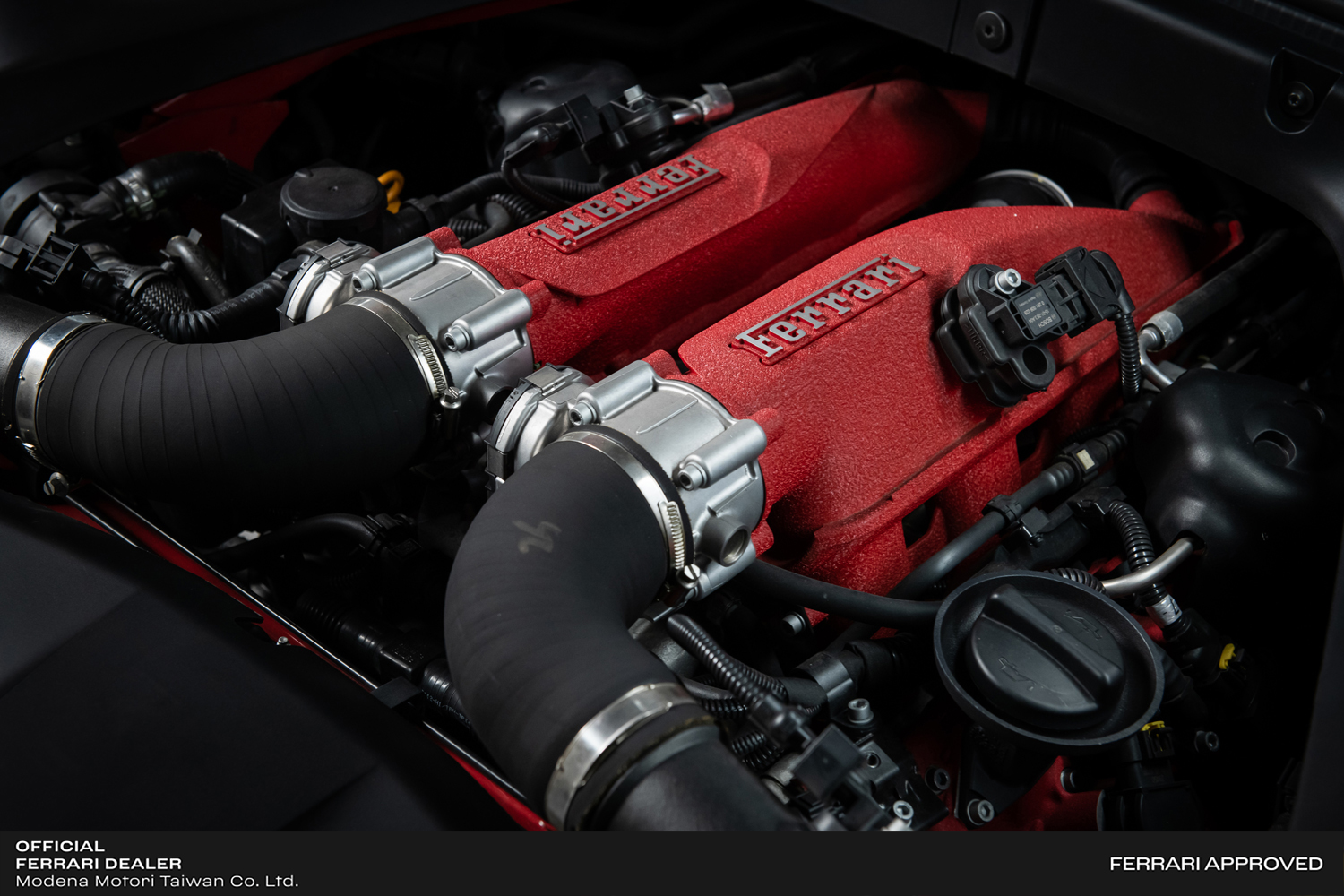 • 坐擁2016國際引擎大賞四大獎項背書的3.9升法拉利V型八缸渦輪鉅作F154CB引擎與源自Ferrari FF的七速雙離合器變速箱,擁有較前作大幅成長了一百匹之譜的馬力輸出,77公斤米的扭力更可以在三檔到七檔間從2750rpm起持續供給直到紅線,實現不亞於自然進氣十二缸引擎的絕對性能表現。