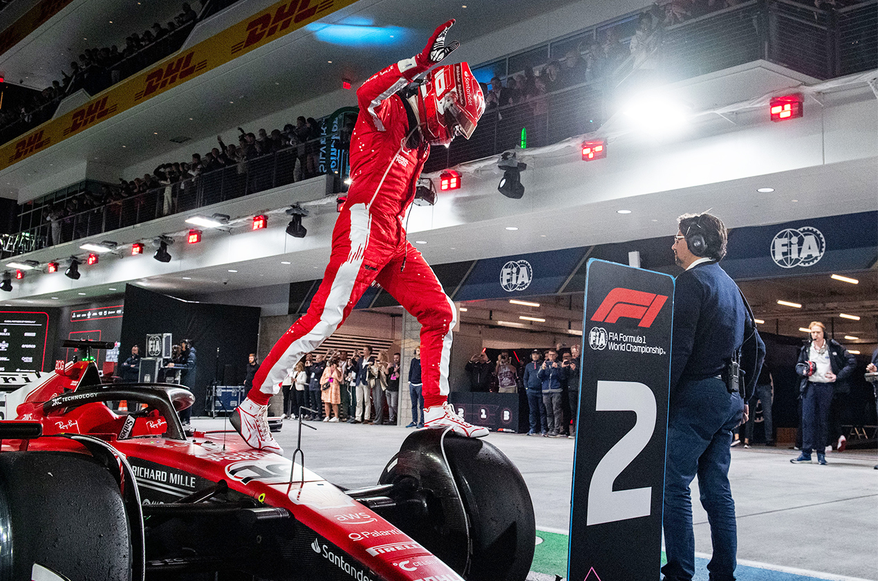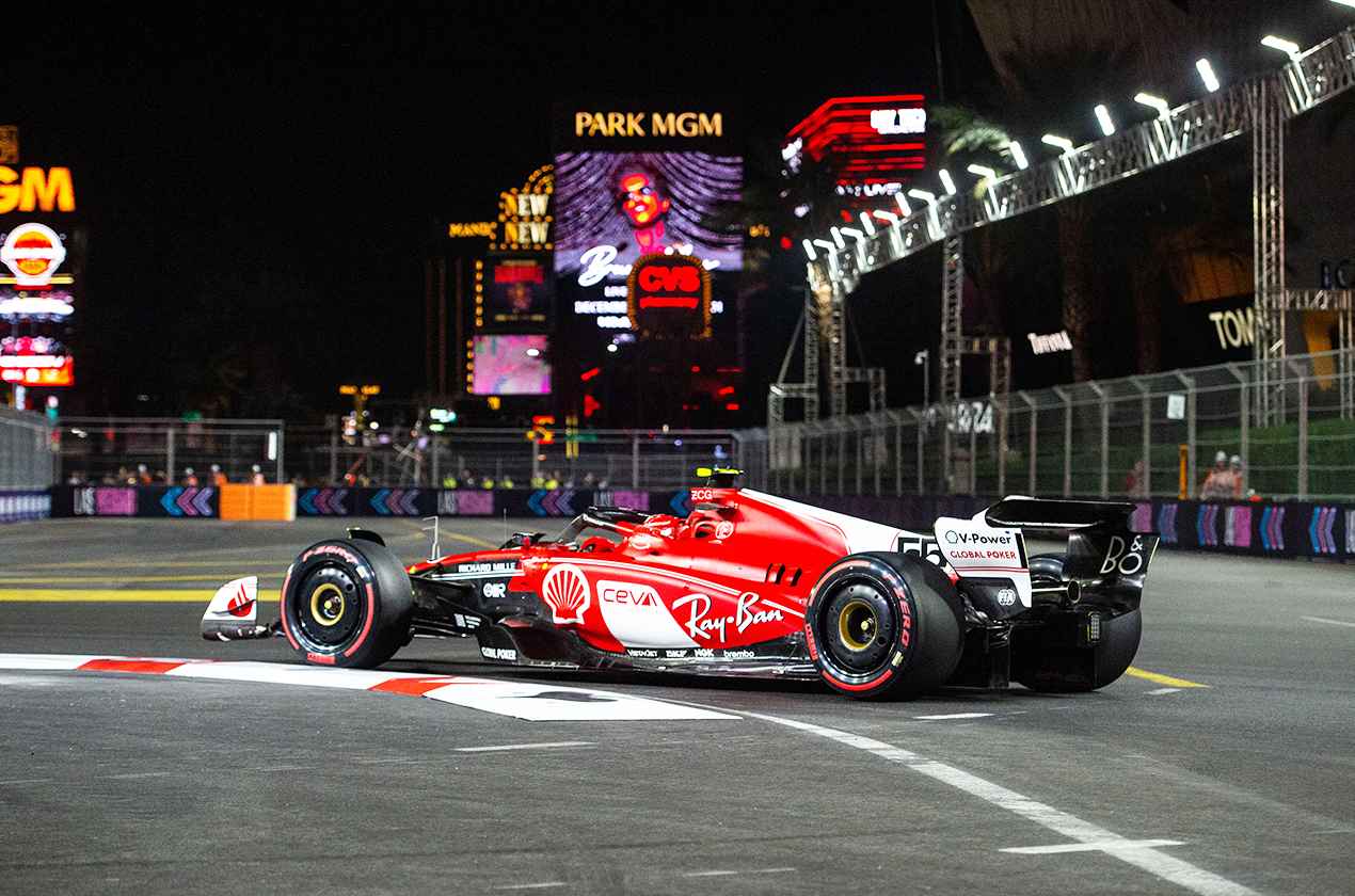 如同今年法拉利車隊在排位賽中的耀眼表現,Charles Leclerc在拉斯維加斯的速度令人折服,最終更是奪下桿位;除此之外,練習賽戰車嚴重受損的Carlos Sainz,竟也在車輛修復後以不到0.1秒的差距拿下排位賽第二,這也再次彰顯車手與車隊同時貫徹不到最後永不放棄的精神!