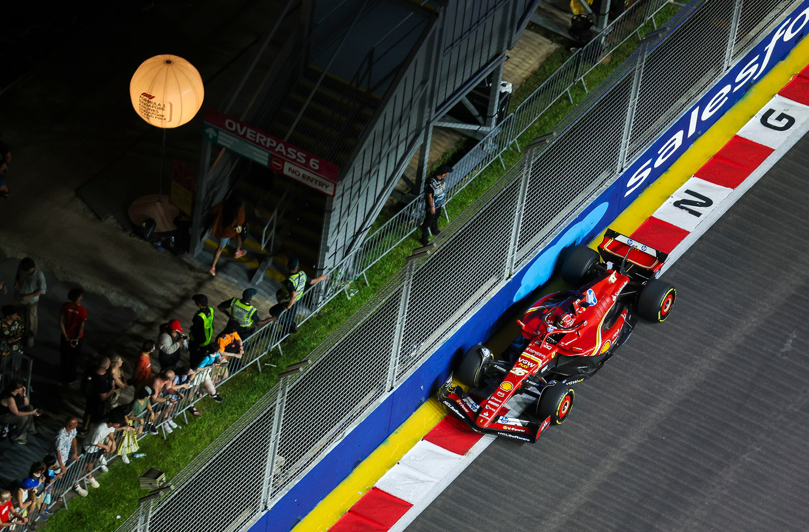 回首去年的新加坡大賽,Scuderia Ferrari法拉利車隊在激烈競爭中脫穎而出,帶給全球車迷一場拍案叫絕的夜間大賽,不過今年新加坡大賽對於法拉利車隊來說卻充滿異常的挑戰。首先在排位賽,兩輛賽車輕鬆晉級至第三節排位賽,而從第三節排位賽開始,好運這次似乎沒有站在躍馬車隊這裡,當Carlos Sainz要進行第一次衝刺圈時突然在最後一個彎道失控撞上護欄,等於是宣告了比賽將從第10位進行起跑。