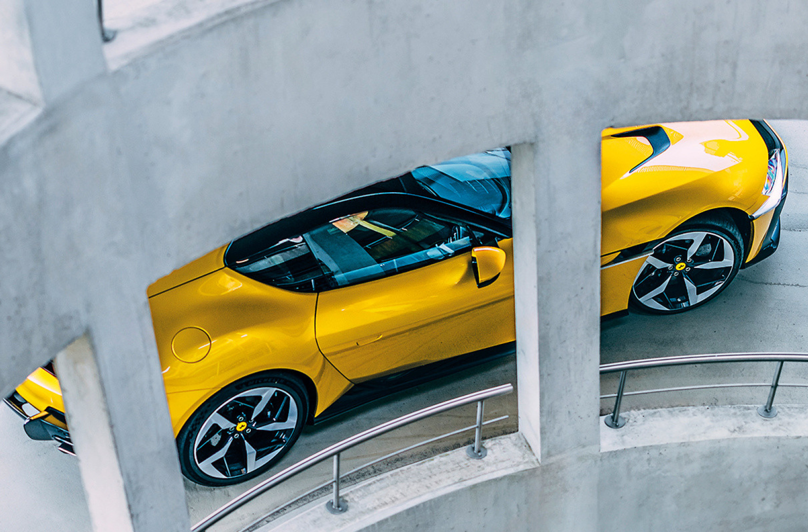 穿越阿道夫橋行駛前往盧森堡,在這一趟橫貫歐洲大陸的行程中,能感受到與旅程開始時一樣的輕鬆自在。當抵達歐洲廣場時,Ferrari V12引擎的轟鳴聲如交響樂般迴盪在盧森堡音樂廳窗邊。而音樂廳充滿未來主義風格的玻璃外牆上印襯出的汽車倒影。幾何造型的外觀、強大馬力,以及無與倫比的駕駛體驗,使Ferrari 12Cilindri感性十足。若是作為一種純粹活力的體現,它也是無與倫比的。