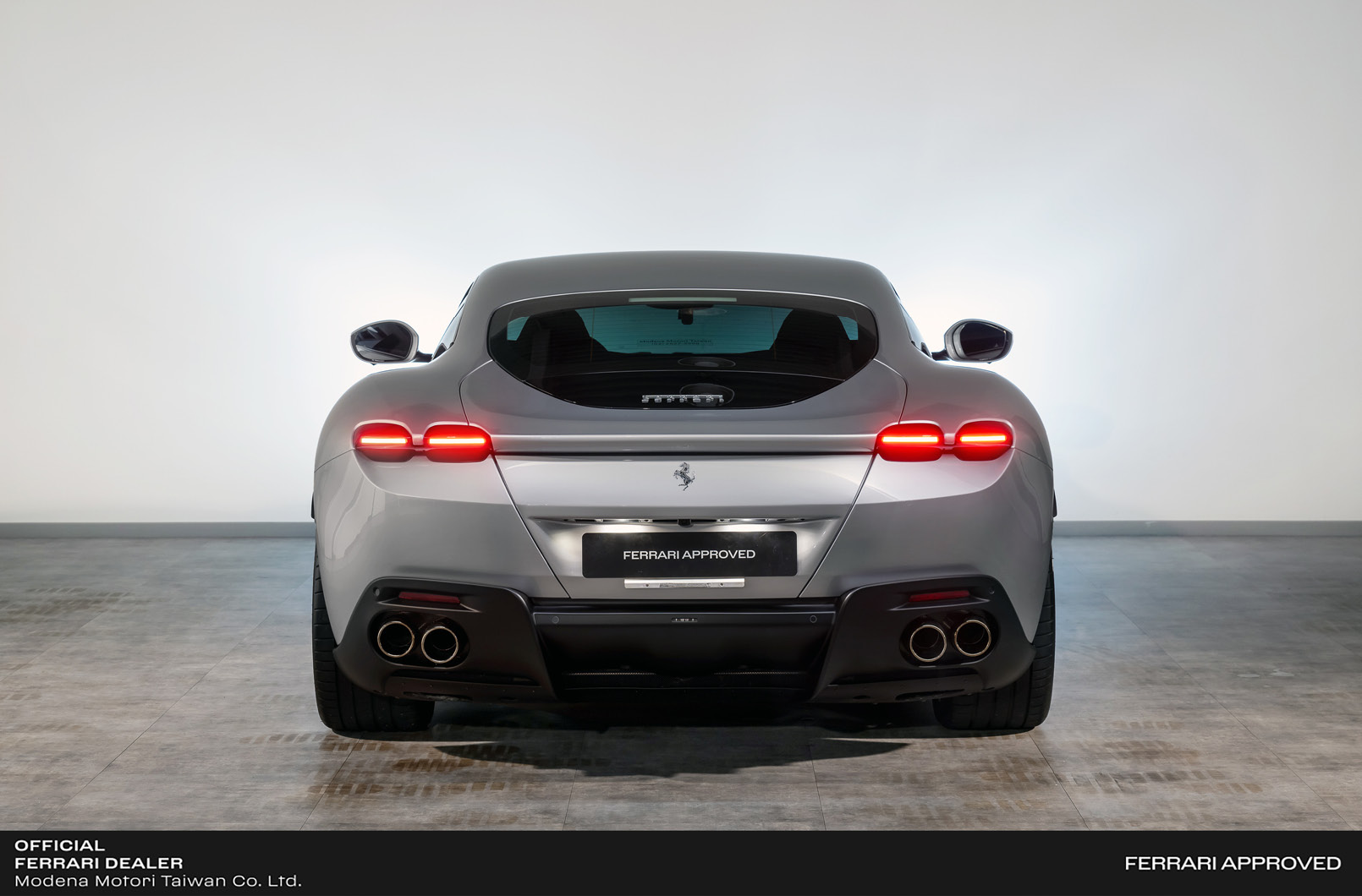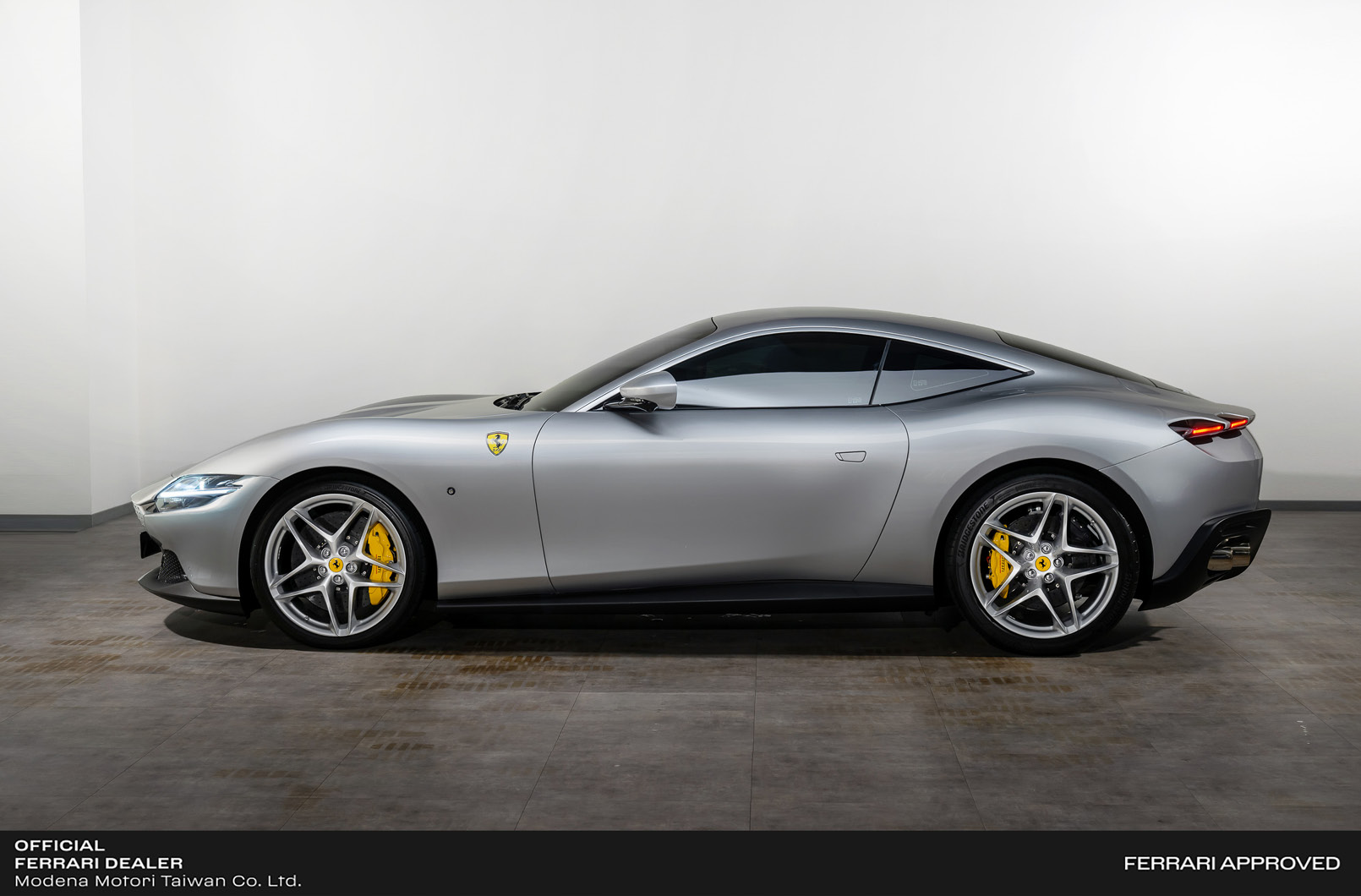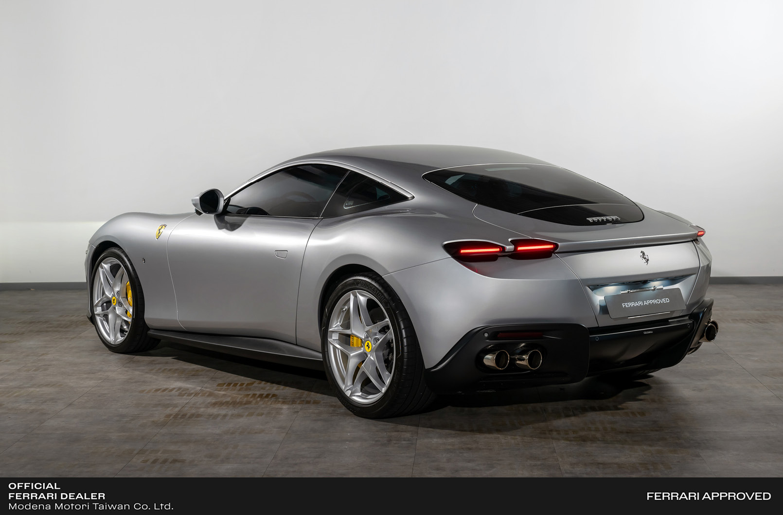 - Ferrari Roma,中置前驅超級跑車,搭載多次奪得國際引擎大賞的3.9升V8渦輪增壓引擎,此引擎結合了先進的技術,為Roma提供了無與倫比的動力與效能。另外搭配來自 SF90 Stradale 的 8 速雙離合器自手排變速箱,在加速性能上,可在3.4秒內完成0到100公里的加速,最高時速可達320 km/hr。