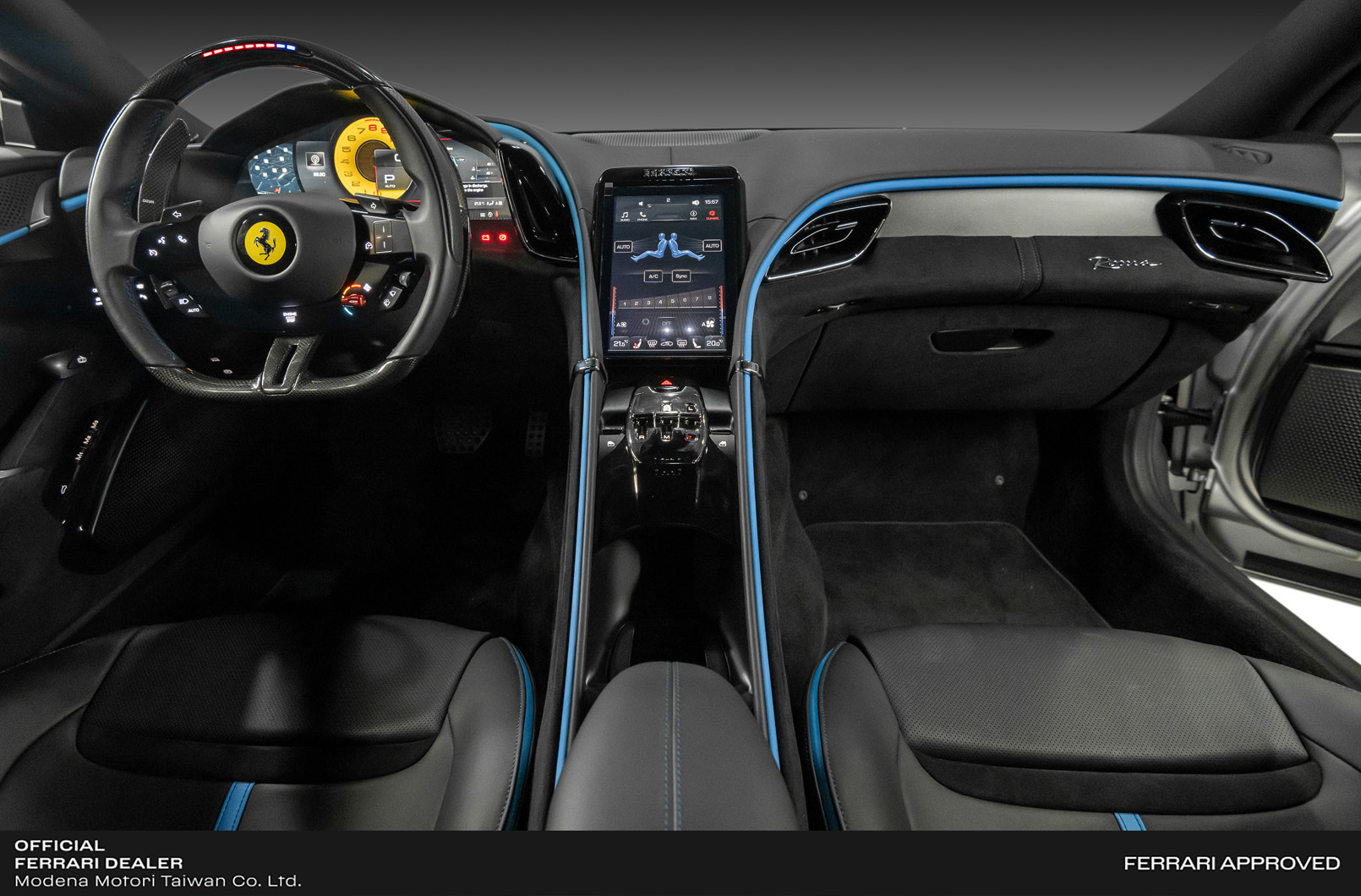 - Roma首次配備Manettino旋鈕,提供Wet、Comfort、Sport、Race以及ESC-Off等5種駕駛模式,創造多元激情的駕駛體驗。此外,Roma還導入了最新SSC 6.0 側滑控制系統,整合了多項技術,包括E-Diff、F1-Trac、SCM-E Frs以及FDE法拉利動態強化系統等多項技術,有效提升其動態性能與反應速度,並確保在高速駕駛時車輛的穩定性和抓地力。