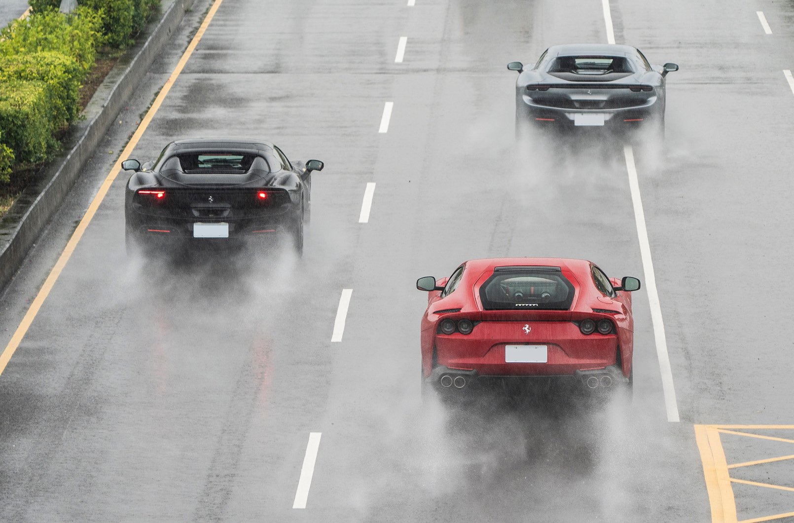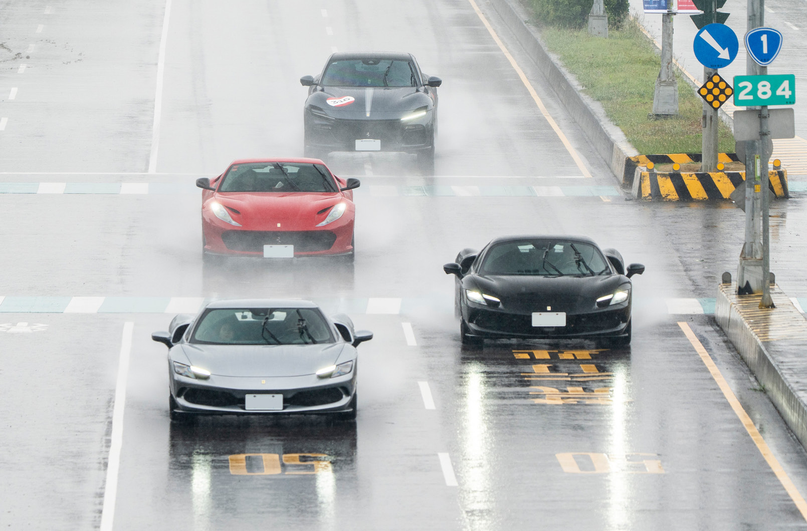 活動於雨中開始,賦予了這次駕駛之旅一份特殊的情懷與浪漫。車隊從Ferrari高雄展示中心出發,沿途穿越繁華市景轉入蜿蜒山路,每一次的轉彎和加速都深刻展現了Ferrari跑車的極致操控與性能。雨滴敲打在車窗上,窗外朦朧的山巒美景與引擎的轟鳴交織出一場視覺與聽覺的盛宴。