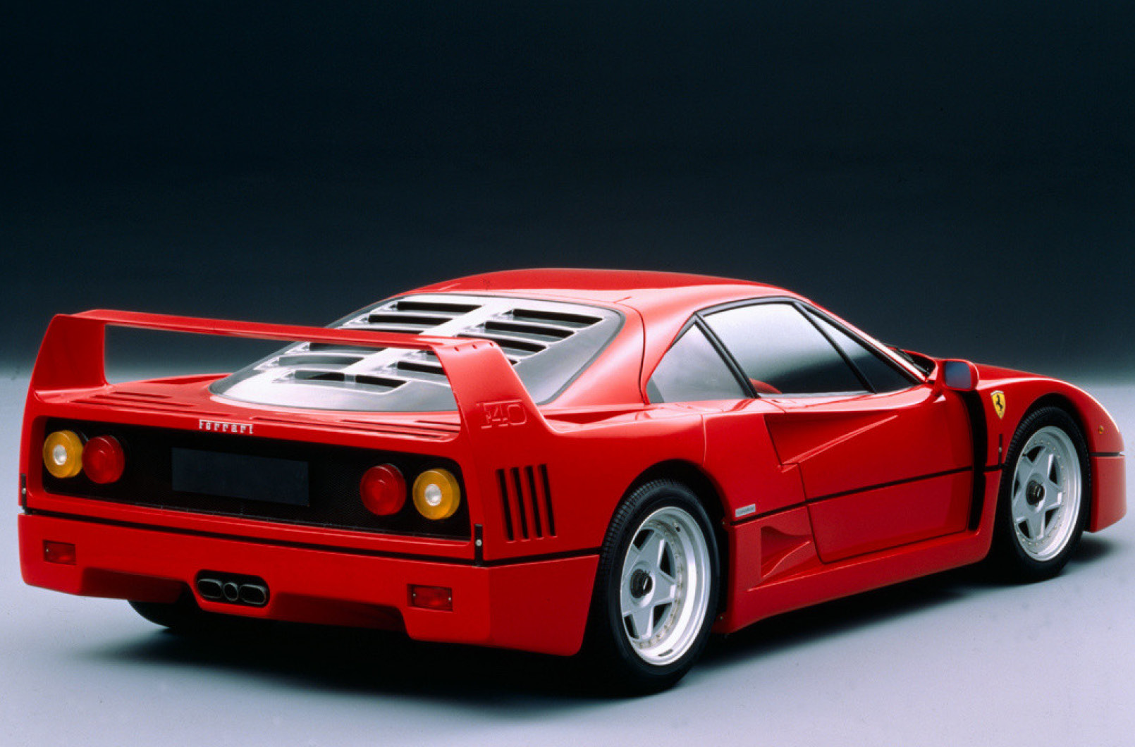 雖然F40並不是為了賽車而誕生,但它無與倫比的性能和簡約的內裝設計,更是對賽車精神的絕佳詮釋。F40緊接著GTO之後推出,流線型的車身設計與前代車型截然不同,引擎方面則以GTO為基礎進一步發展。雙渦輪增壓的V8引擎增大到2.9升,功率和扭矩提升至478 cv和577 Nm,最高時速達到324 km/h。