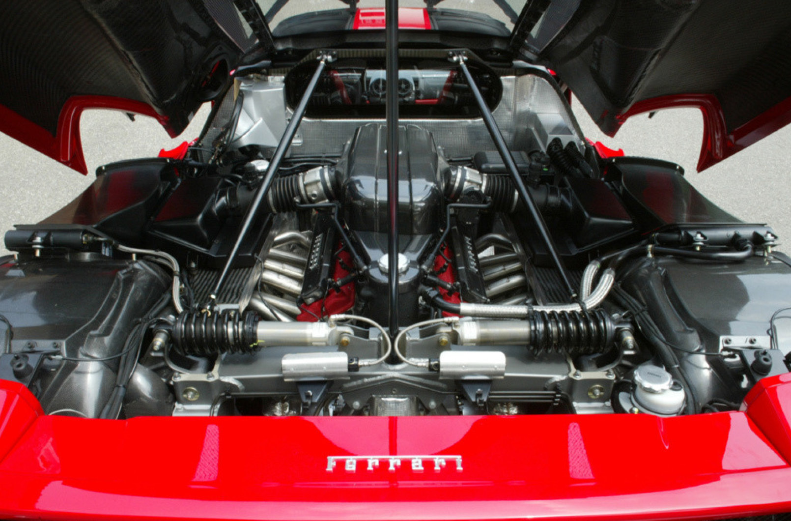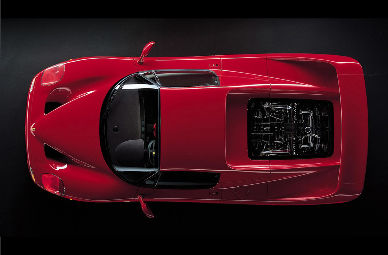 雖然GTO和F40明顯受益於F1賽車的引擎技術,但F50與412 T2之間的連結更加緊密。F50的雙A臂獨立懸吊設計和碳纖維車體結構進一步突顯了源自賽車的技術轉移。