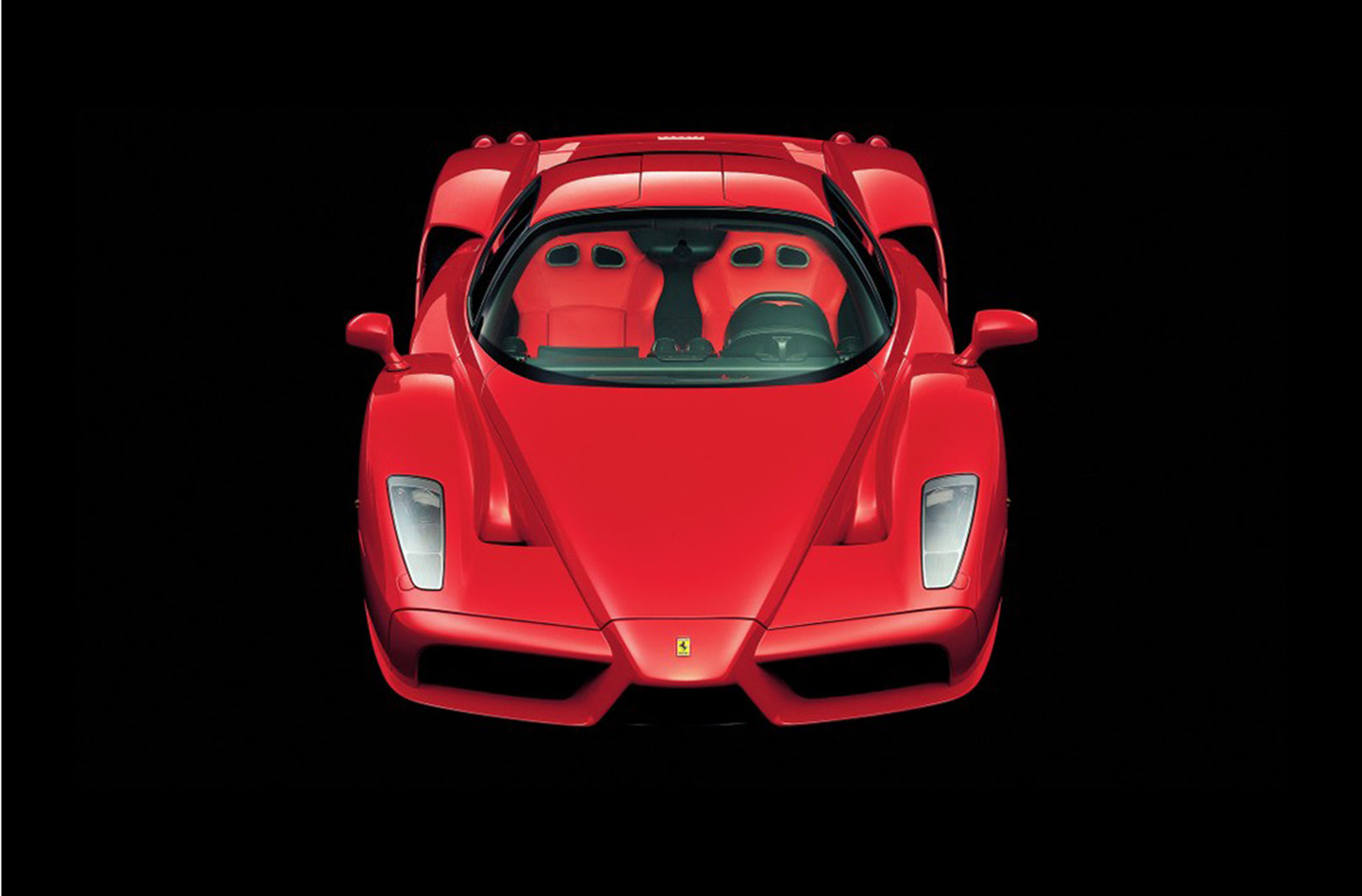 (圖片解說) Michael Schumacher對Enzo的開發有直接貢獻,並在駕駛F2002中表現出色;Enzo的V12自然進氣引擎產生驚人的660 cv,並且是第一款採用F1撥片換擋系統的車型。