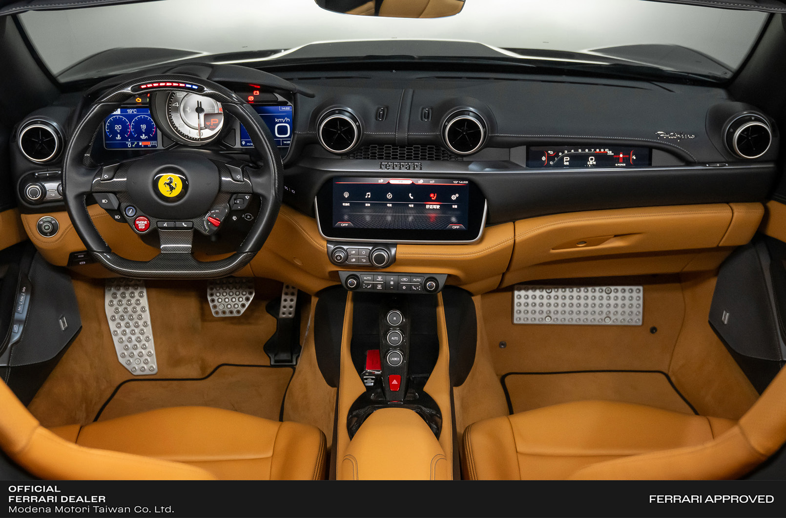 - 駕駛模式與動態調整: Ferrari Portofino M引入了全新的Manettino旋鈕,提供五種駕駛模式,其中包括專為高性能駕駛設計的「RACE」模式。這一模式下車輛的動力系統、懸吊設定以及穩定控制系統都將讓駕駛者獲得如在賽道駕駛的極致操控感受。其他模式如Comfort、Sport和Wet模式則適應不同的道路和天氣條件,讓駕駛者在各種駕駛環境中都能享受最佳的駕駛體驗。