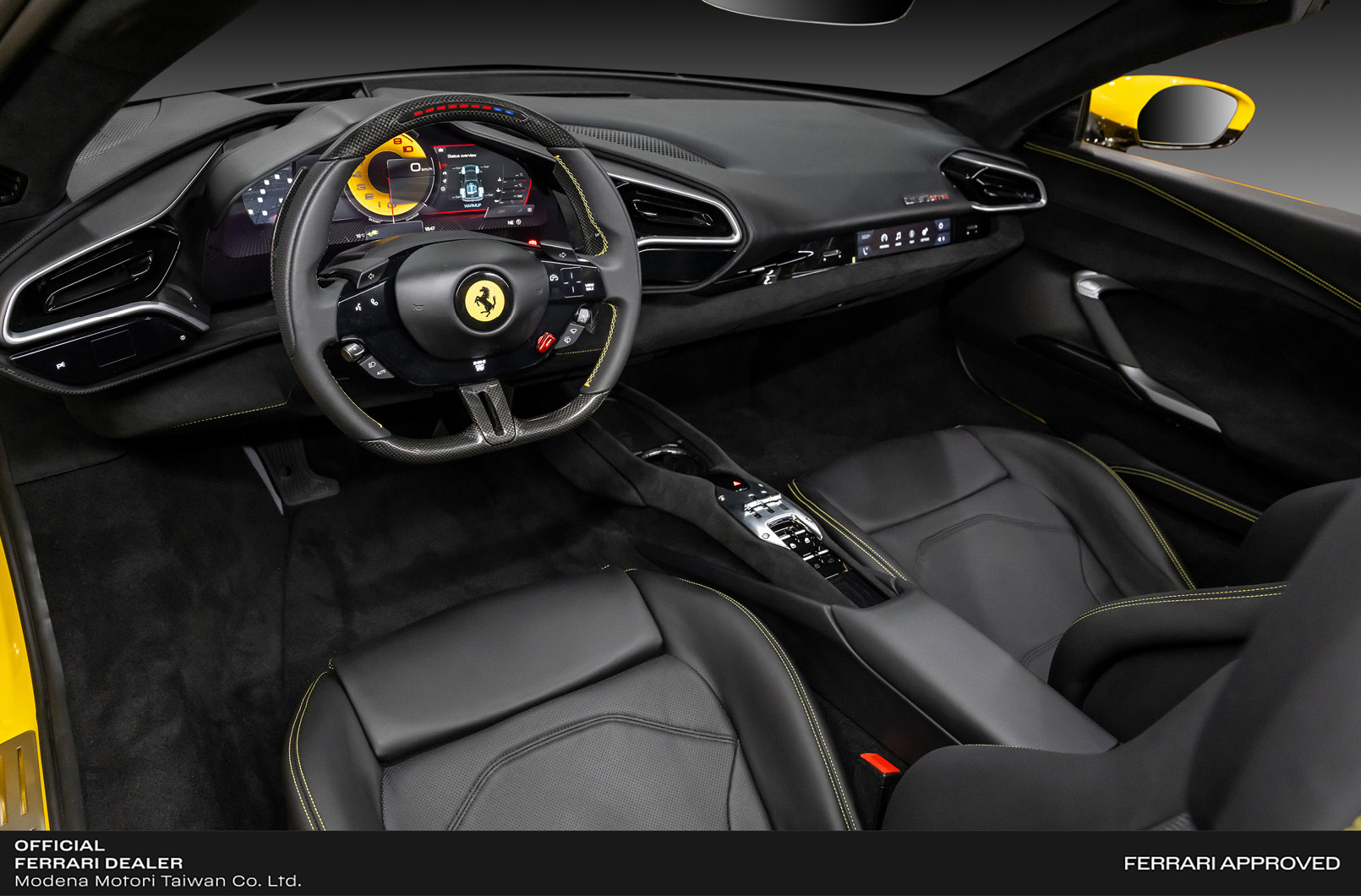 - 設計與內裝:車內配置沿用Ferrari 296 GTB,搭載16吋數位儀表板和全數位化人機交換介面,儀表板關閉時呈現全黑效果。由義大利皮革包覆的座椅和內裝延續躍馬一貫的豪華質感,並新增敞篷與後玻璃電動窗的開關。
