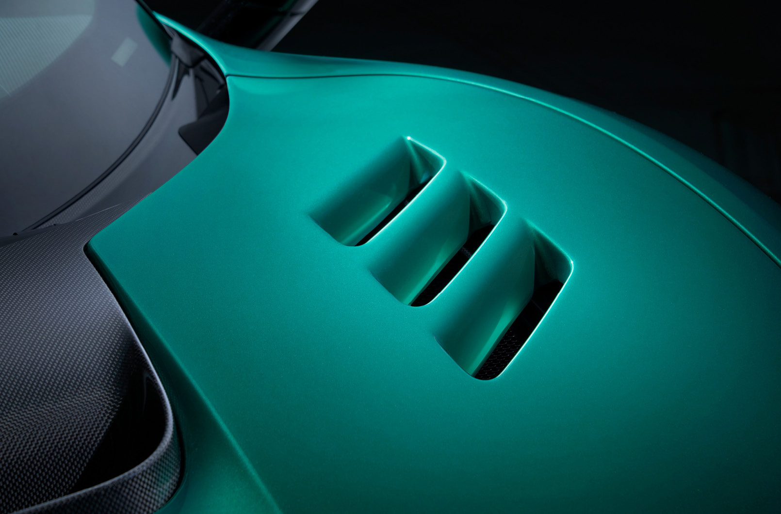 從車身外觀來看,總體增加了20%顯著的下壓力,達到435公斤。值得注意的亮點包括新的空氣阻尼器,通過前保險桿引導空氣並從引擎蓋的雕塑性凹槽中排出——幫助穩定在重煞和加速時的姿態。在車輛尾部,新的側翼與一個具備低阻力、中等下壓力和高下壓力設置的可調尾翼協同工作。