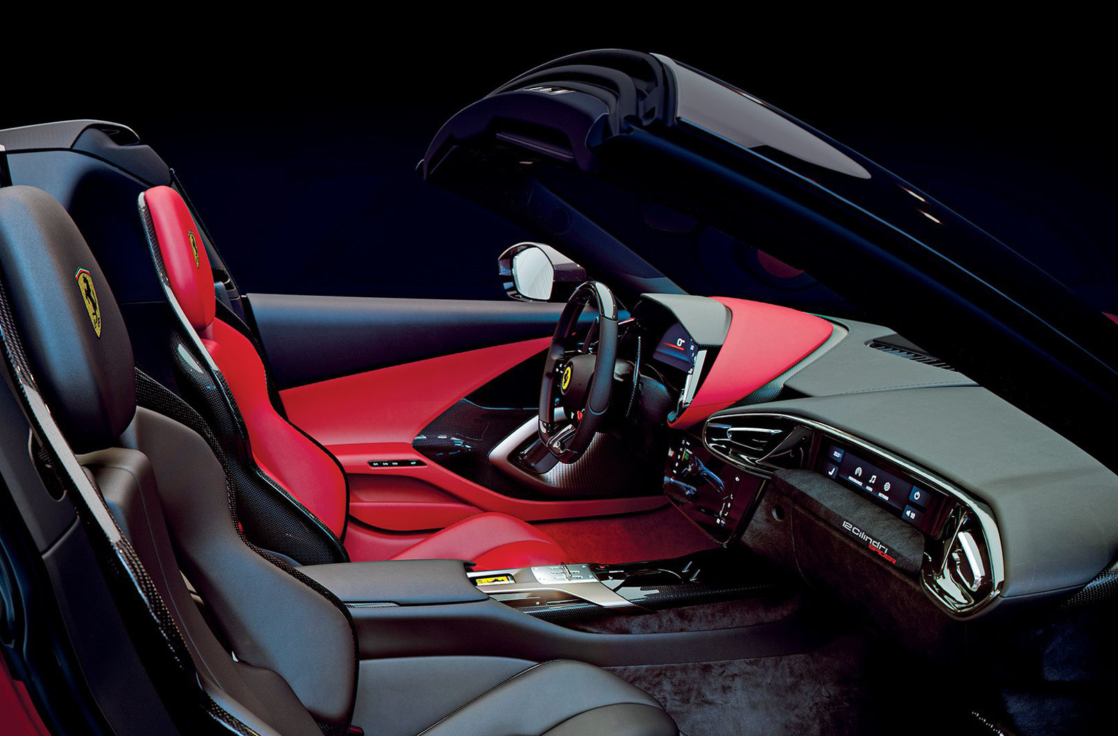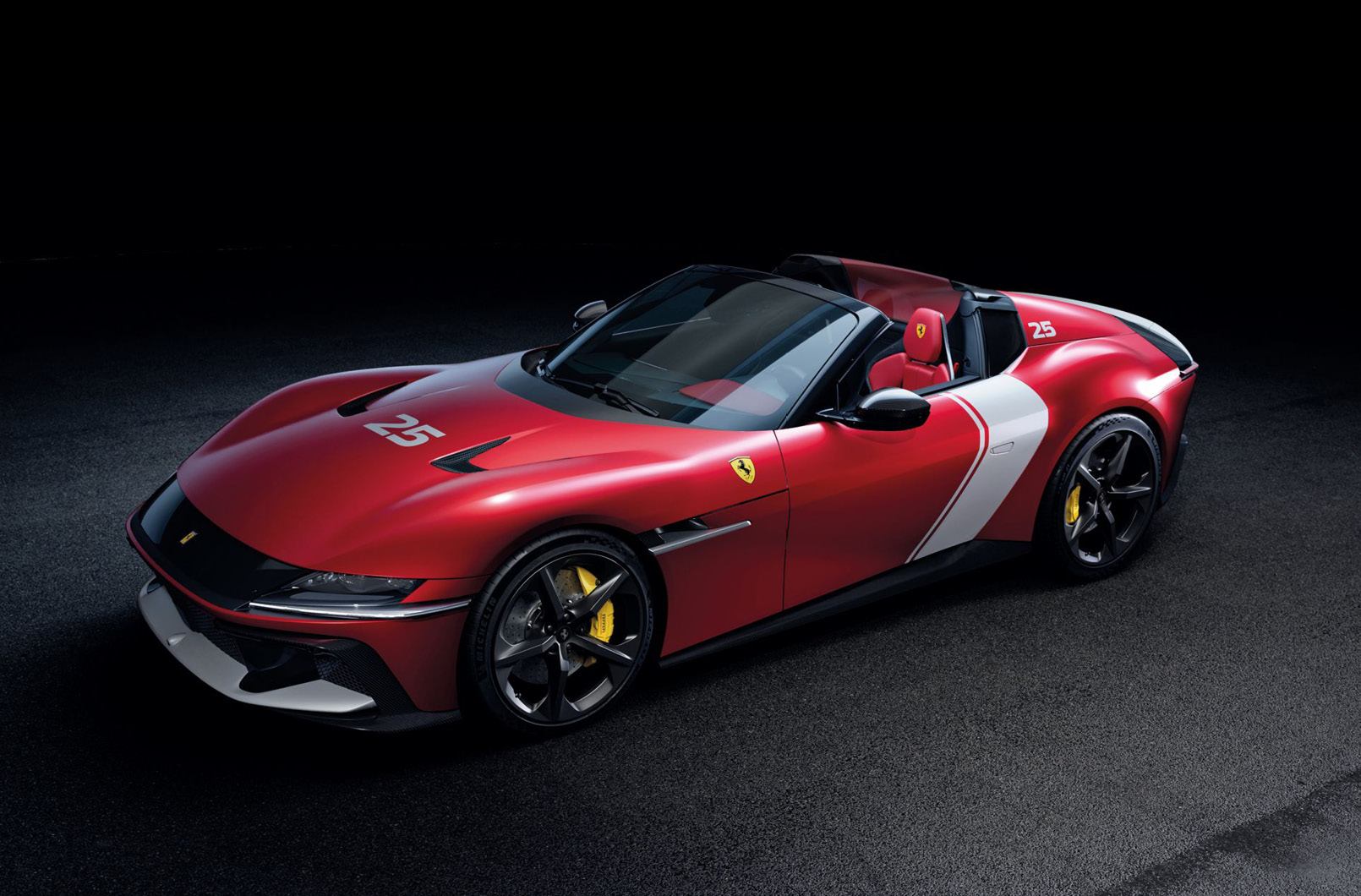 對於熱愛Ferrari的忠實客戶來說,還有一個額外的選擇,可以將「Rosso Racing 2025」塗裝的精神帶入駕駛艙中,以雙色調內裝將駕駛與乘客側之間做出清晰的分隔,這增強了駕駛在一級方程式單座賽車的感覺。駕駛側採用「Rosso Giudecca」,使用在駕駛座、地墊和門板上,而乘客側則為黑色。其他特色包括特殊的SF-25門檻和兩個字之間的專屬銘牌。