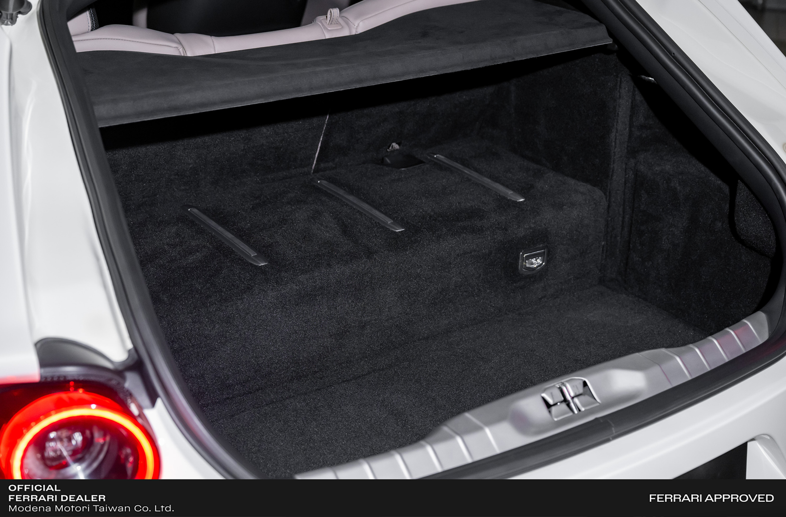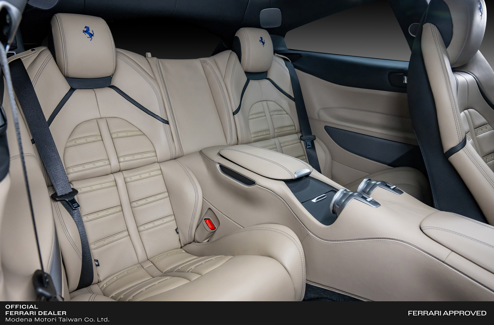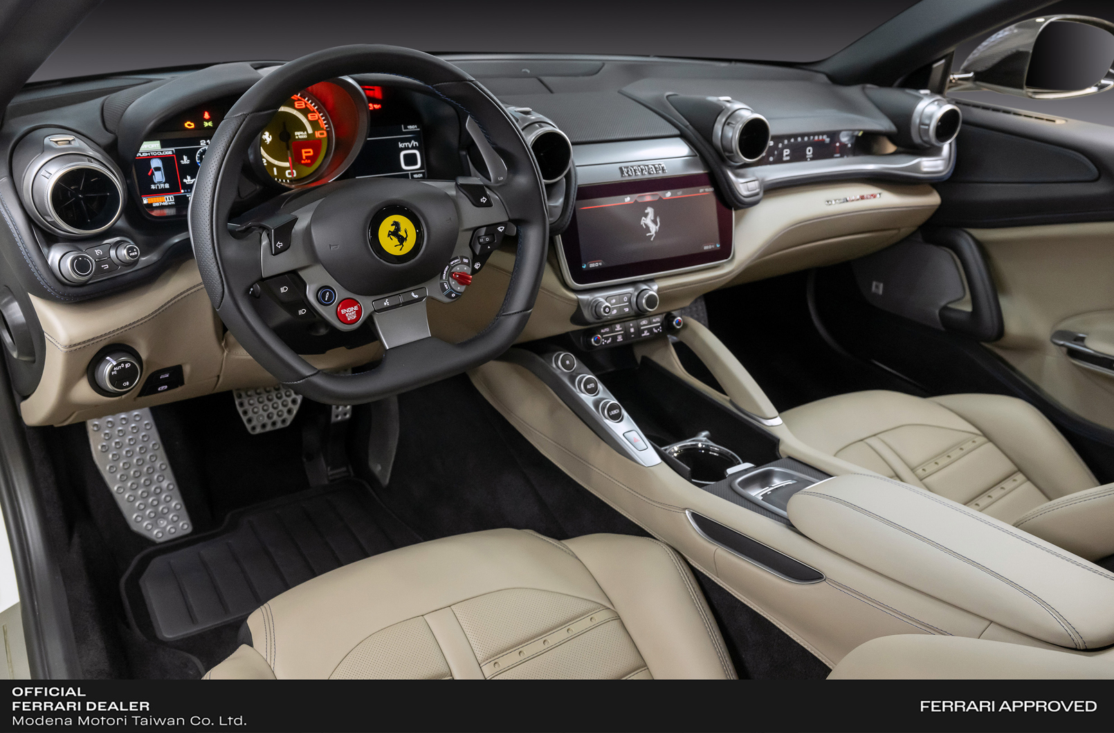 - 內裝設計延續 Ferrari 對細節的極致追求,結合皮革工藝與運動美學。搭載 10.25 吋全高清觸控顯示幕 的全新資訊娛樂系統,提供直覺化操作與智慧互聯體驗。更緊湊的方向盤設計整合多項功能,讓駕駛在專注操控的同時,亦能輕鬆掌握所有車輛資訊。前後座皆保有寬敞舒適空間,實現性能與日常實用性的完美平衡。