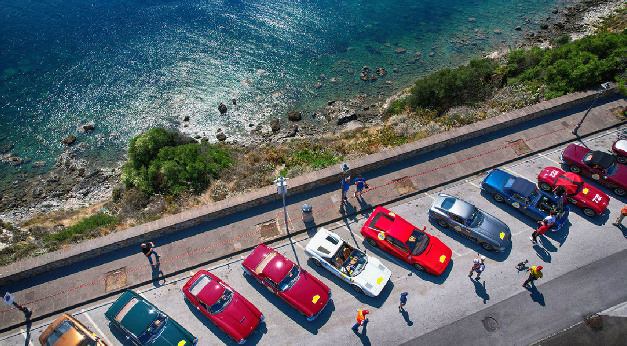 活動路線本身包括了該島所有代表性的地形。第一天,Cavalcade車隊出發前往Sant'Agata di Militello,全程往返距離長達270公里。首先車隊穿過霧濛濛的Nebrodi山脈,然後下降到Trrhenian海岸,在那裡有雲彩伴隨著燦爛陽光,背景則是波光粼粼的海水,呈現出一副夢幻景象。